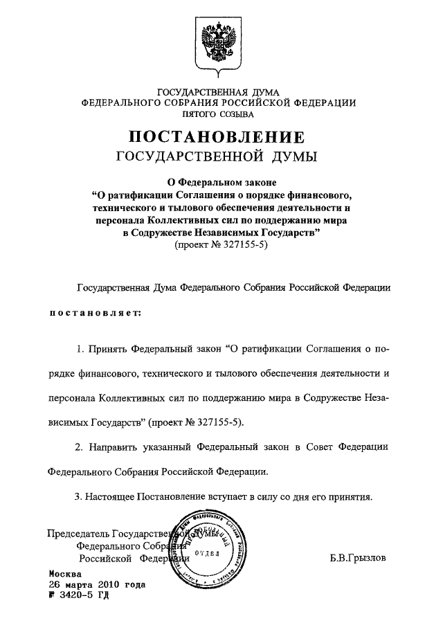 ПОСТАНОВЛЕНИЕ ГД ФС РФ от 26.03.2010 N 3420-5 ГД