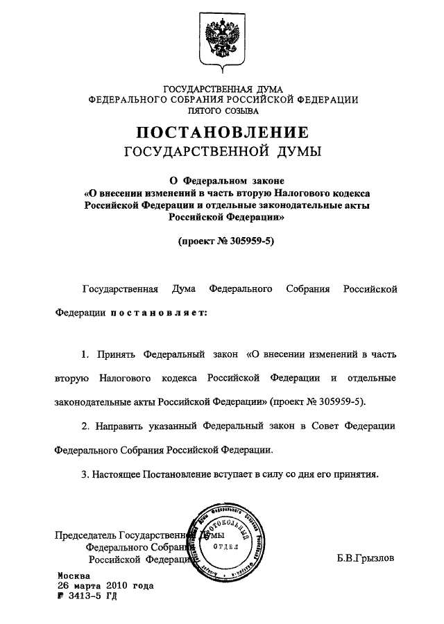 ПОСТАНОВЛЕНИЕ ГД ФС РФ от 26.03.2010 N 3413-5 ГД