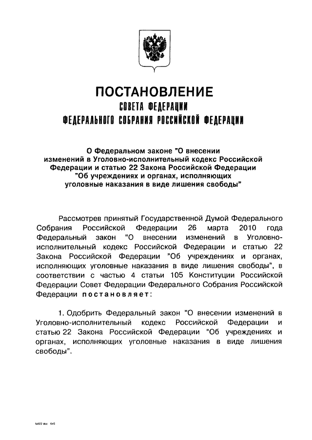 ПОСТАНОВЛЕНИЕ СФ ФС РФ от 31.03.2010 N 97-СФ
