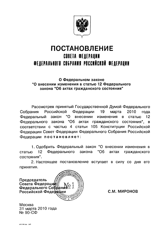 ПОСТАНОВЛЕНИЕ СФ ФС РФ от 31.03.2010 N 90-СФ