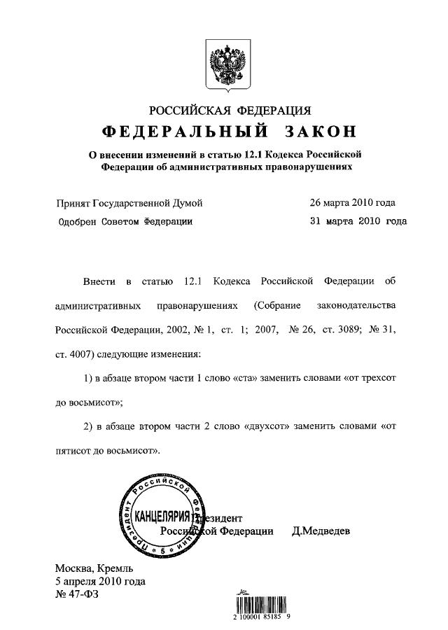 ФЕДЕРАЛЬНЫЙ ЗАКОН от 05.04.2010 N 47-ФЗ
