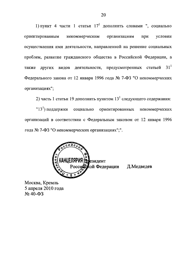 ФЕДЕРАЛЬНЫЙ ЗАКОН от 05.04.2010 N 40-ФЗ