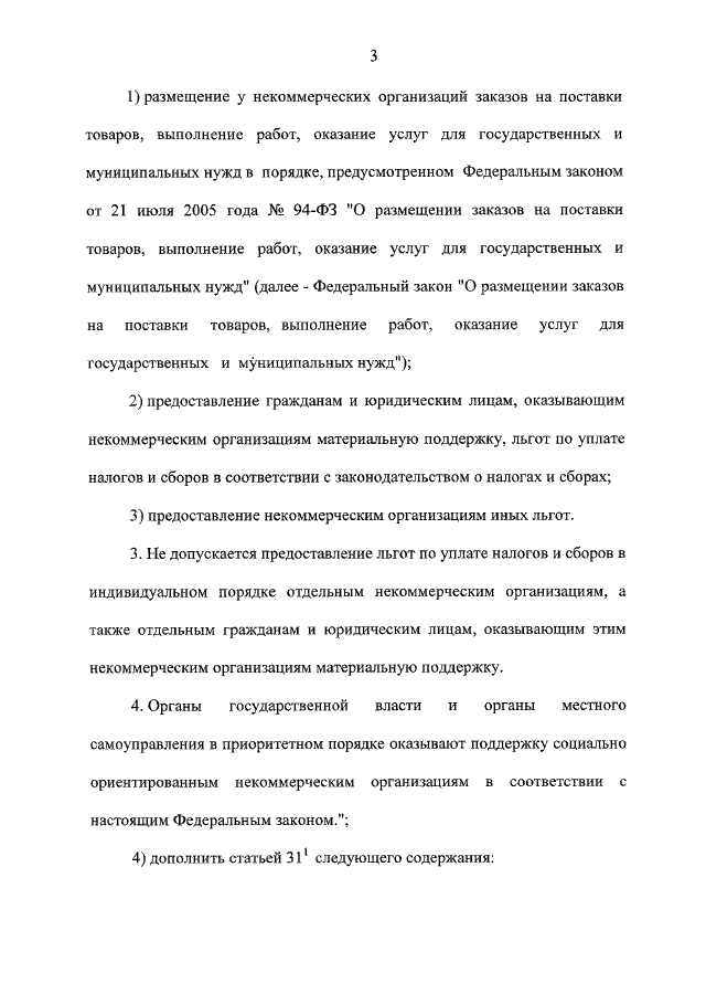 "О ВНЕСЕНИИ ИЗМЕНЕНИЙ В ОТДЕЛЬНЫЕ ЗАКОНОДАТЕЛЬНЫЕ АКТЫ РОССИЙСКОЙ ФЕДЕРАЦИИ ПО ВОПРОСУ ПОДДЕРЖКИ СОЦИАЛЬНО ОРИЕНТИРОВАННЫХ НЕКОММЕРЧЕСКИХ ОРГАНИЗАЦИЙ"