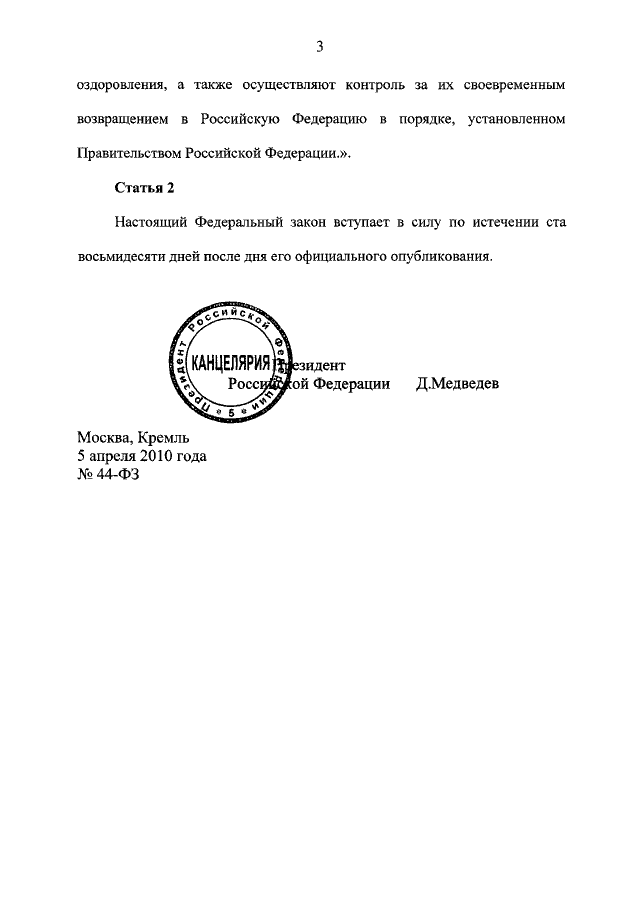 ФЕДЕРАЛЬНЫЙ ЗАКОН от 05.04.2010 N 44-ФЗ