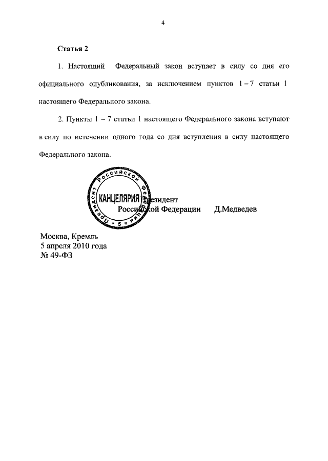 ФЕДЕРАЛЬНЫЙ ЗАКОН от 05.04.2010 N 49-ФЗ