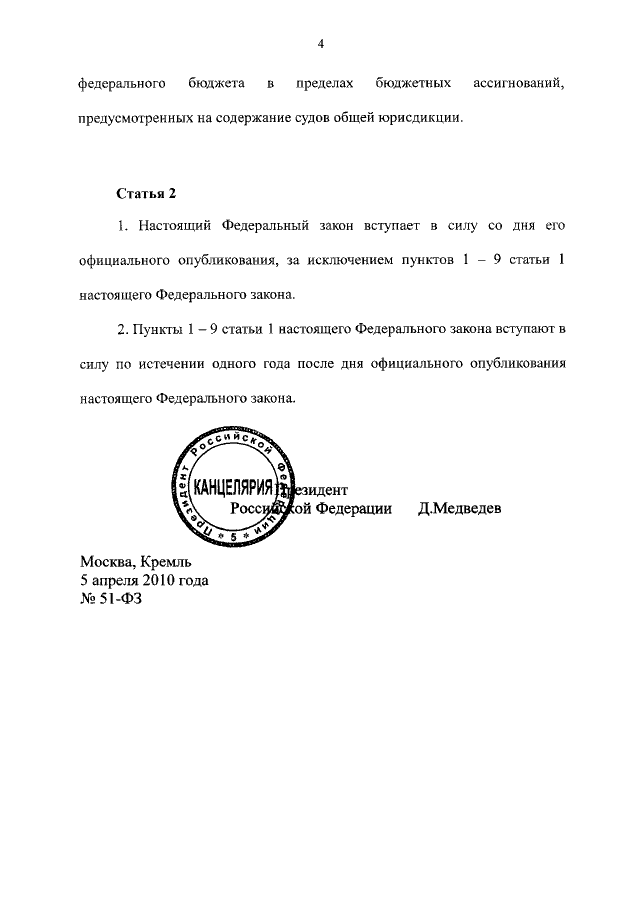 ФЕДЕРАЛЬНЫЙ ЗАКОН от 05.04.2010 N 51-ФЗ