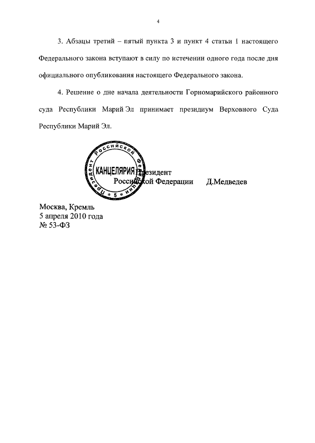 ФЕДЕРАЛЬНЫЙ ЗАКОН от 05.04.2010 N 53-ФЗ