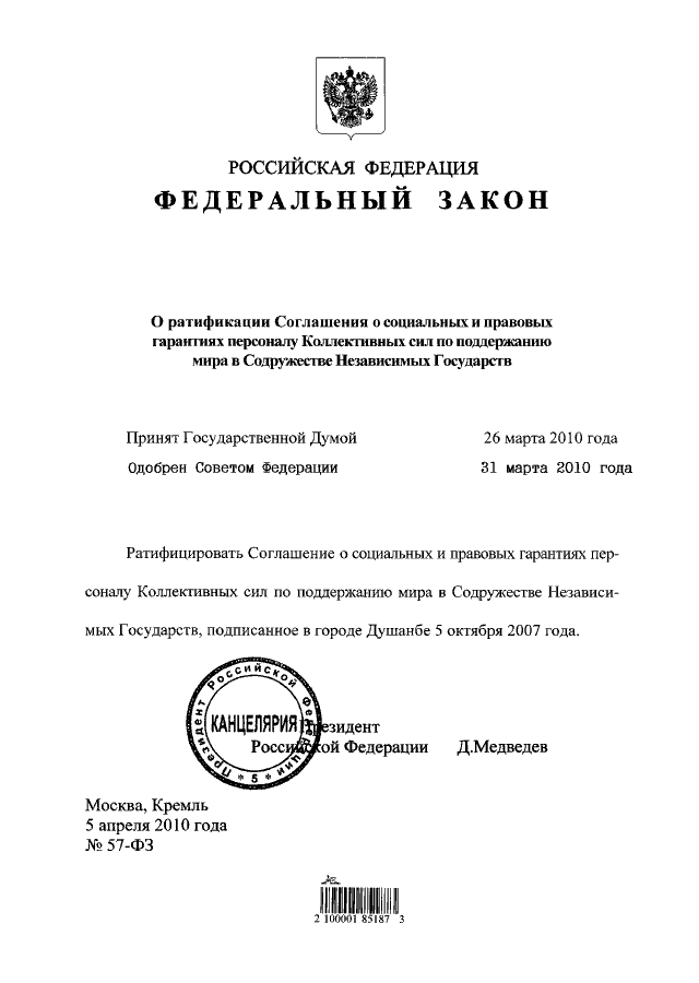 ФЕДЕРАЛЬНЫЙ ЗАКОН от 05.04.2010 N 57-ФЗ