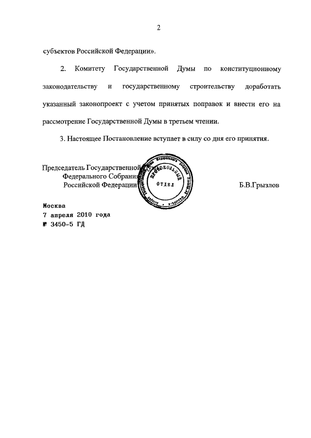 ПОСТАНОВЛЕНИЕ ГД ФС РФ от 07.04.2010 N 3450-5 ГД