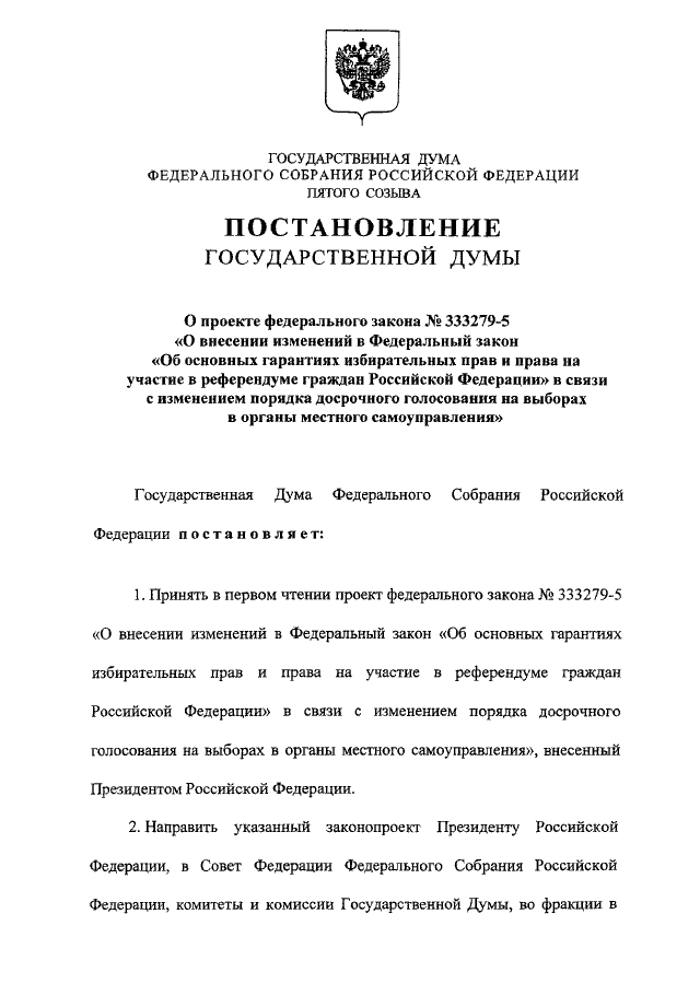 "О ПРОЕКТЕ ФЕДЕРАЛЬНОГО ЗАКОНА N 333279-5 "О ВНЕСЕНИИ ИЗМЕНЕНИЙ В
