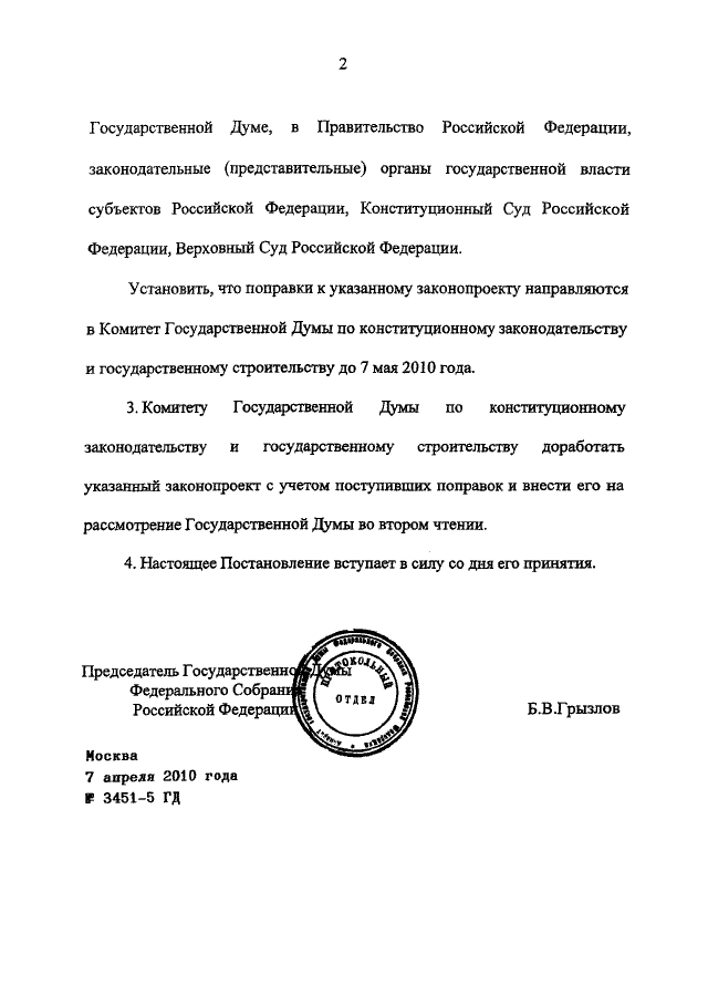ПОСТАНОВЛЕНИЕ ГД ФС РФ от 07.04.2010 N 3451-5 ГД