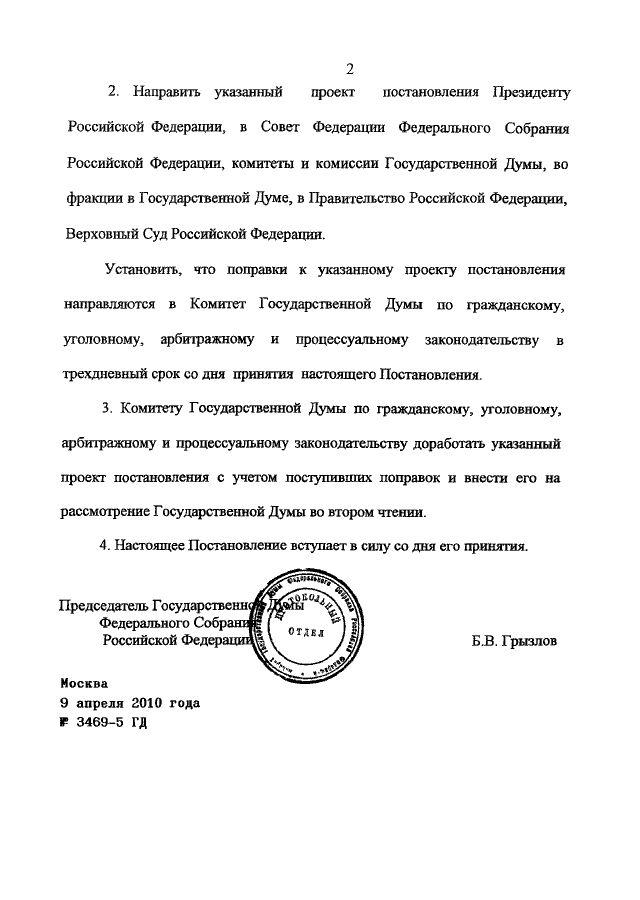 ПОСТАНОВЛЕНИЕ ГД ФС РФ от 09.04.2010 N 3469-5 ГД