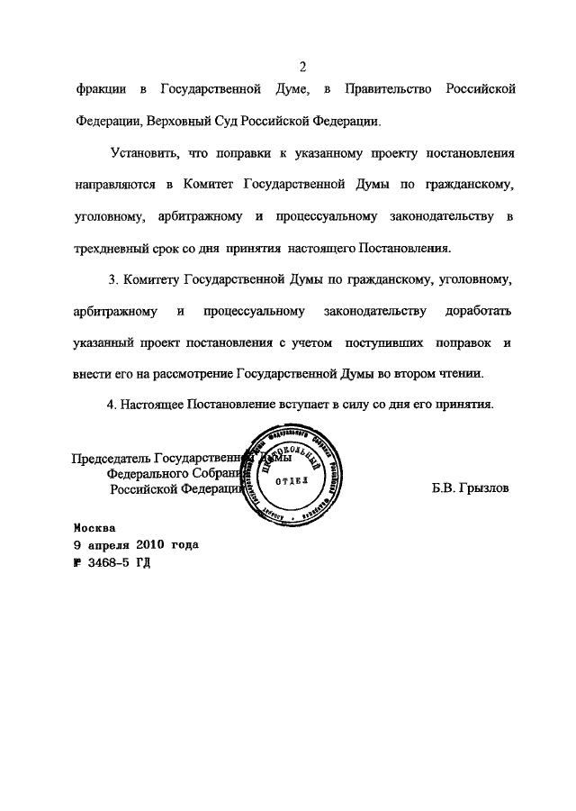 ПОСТАНОВЛЕНИЕ ГД ФС РФ от 09.04.2010 N 3468-5 ГД