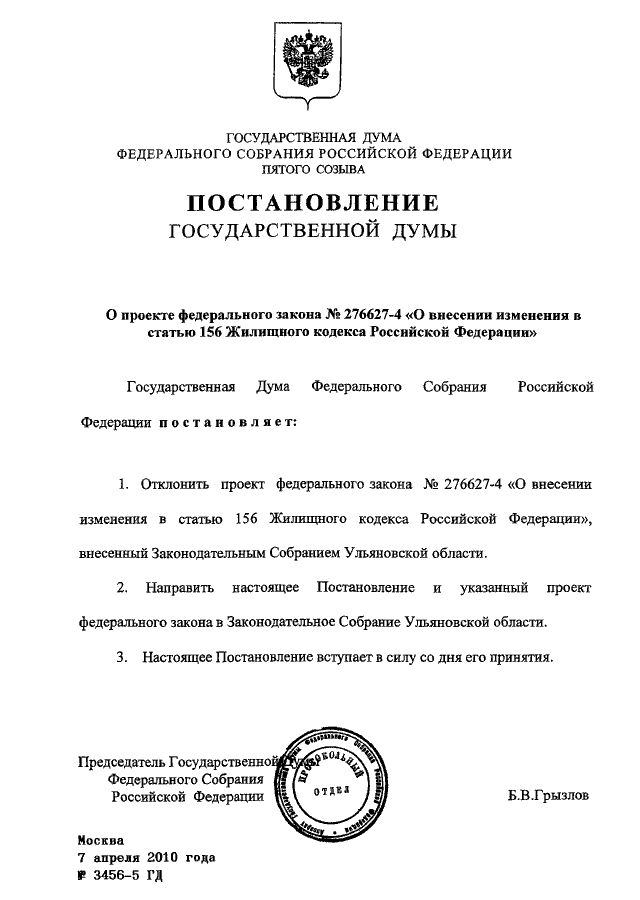ПОСТАНОВЛЕНИЕ ГД ФС РФ от 07.04.2010 N 3456-5 ГД