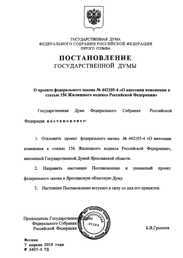 ПОСТАНОВЛЕНИЕ ГД ФС РФ от 07.04.2010 N 3457-5 ГД