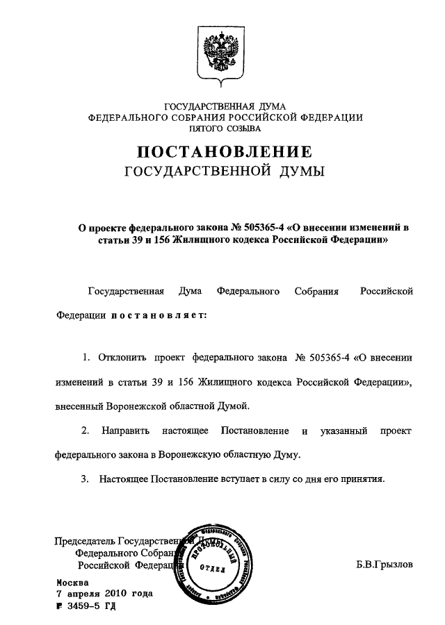 ПОСТАНОВЛЕНИЕ ГД ФС РФ от 07.04.2010 N 3459-5 ГД