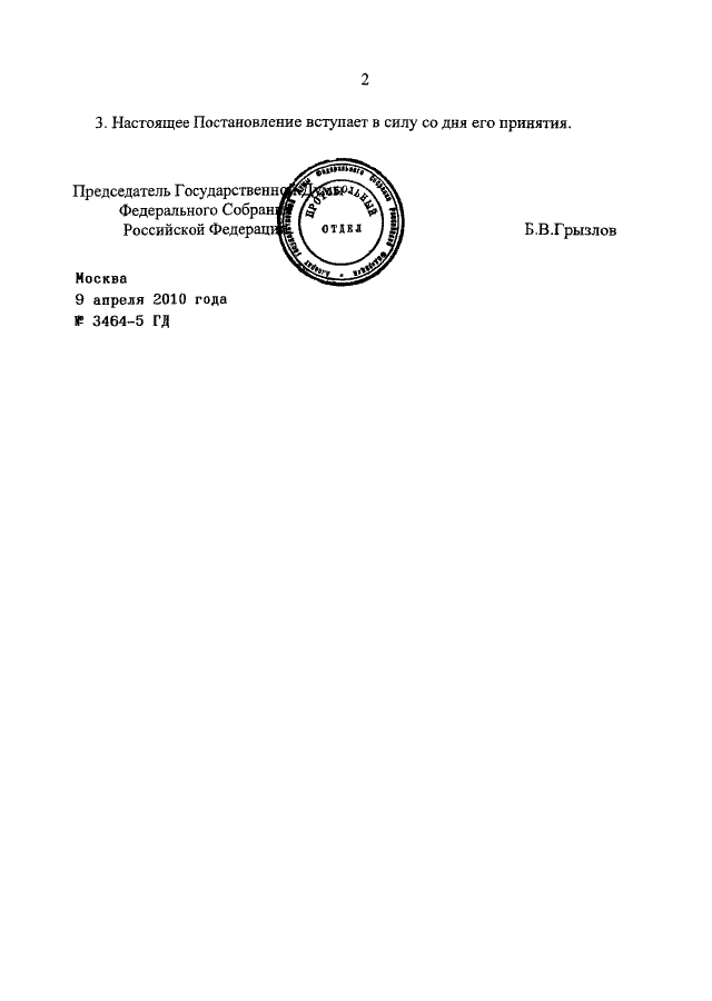 ПОСТАНОВЛЕНИЕ ГД ФС РФ от 09.04.2010 N 3464-5 ГД