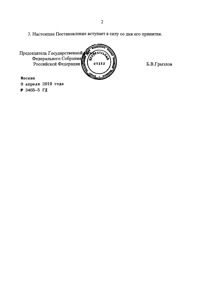 ПОСТАНОВЛЕНИЕ ГД ФС РФ от 09.04.2010 N 3465-5 ГД
