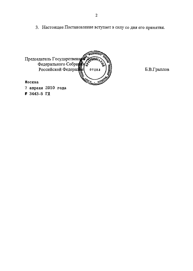 ПОСТАНОВЛЕНИЕ ГД ФС РФ от 07.04.2010 N 3443-5 ГД