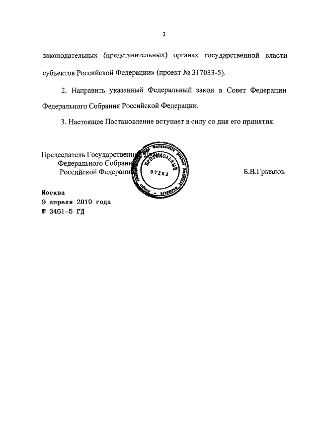 ПОСТАНОВЛЕНИЕ ГД ФС РФ от 09.04.2010 N 3461-5 ГД