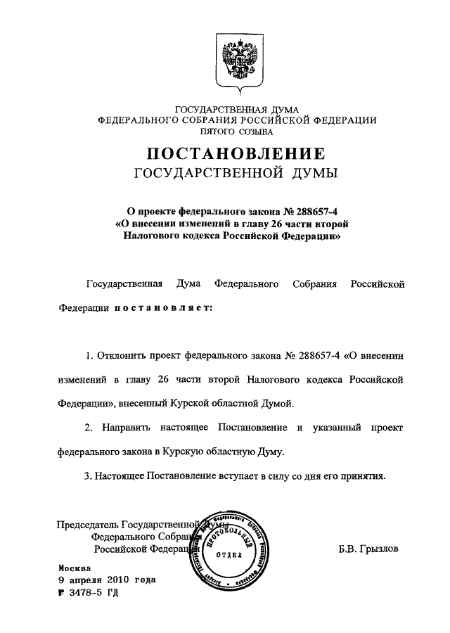 ПОСТАНОВЛЕНИЕ ГД ФС РФ от 09.04.2010 N 3478-5 ГД