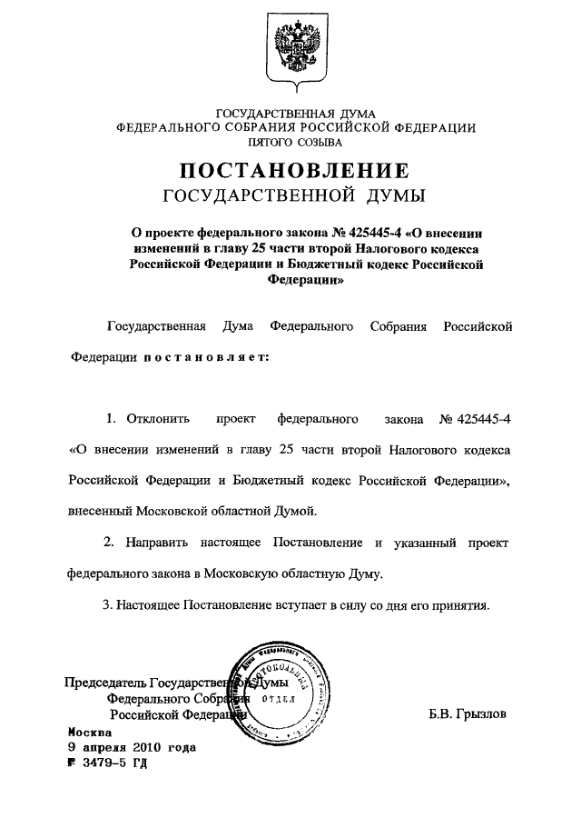 ПОСТАНОВЛЕНИЕ ГД ФС РФ от 09.04.2010 N 3479-5 ГД