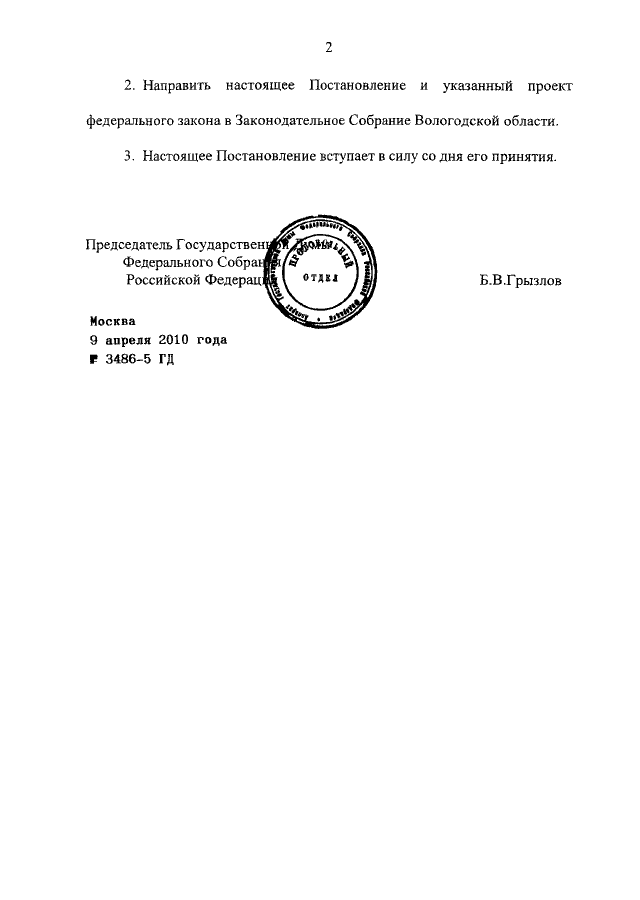 ПОСТАНОВЛЕНИЕ ГД ФС РФ от 09.04.2010 N 3486-5 ГД