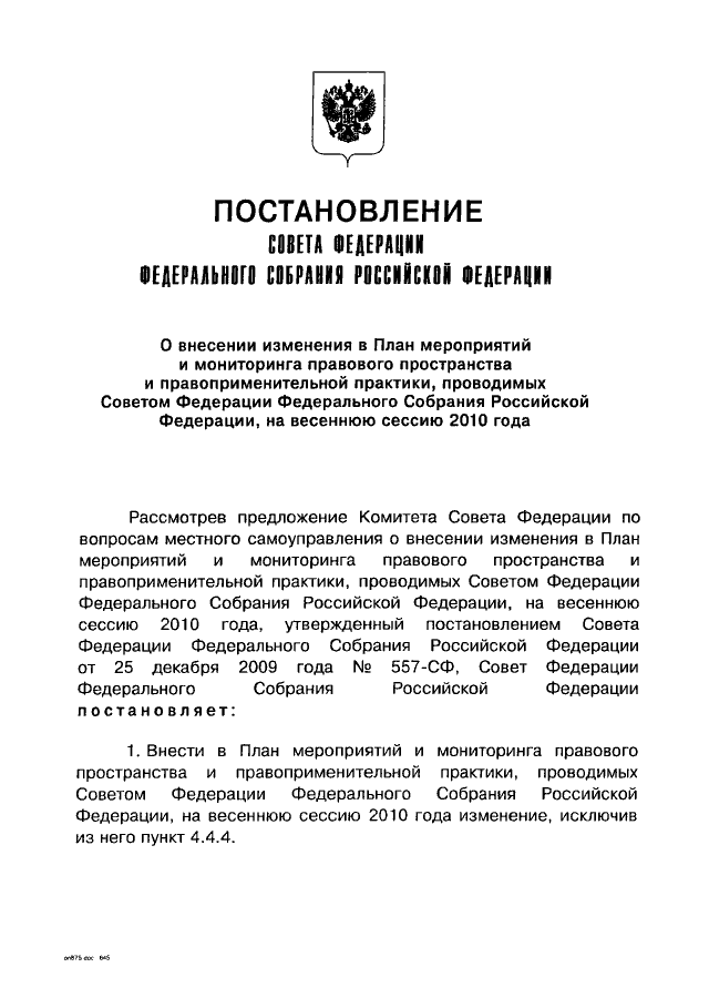 "О ВНЕСЕНИИ ИЗМЕНЕНИЯ В ПЛАН МЕРОПРИЯТИЙ И МОНИТОРИНГА ПРАВОВОГО