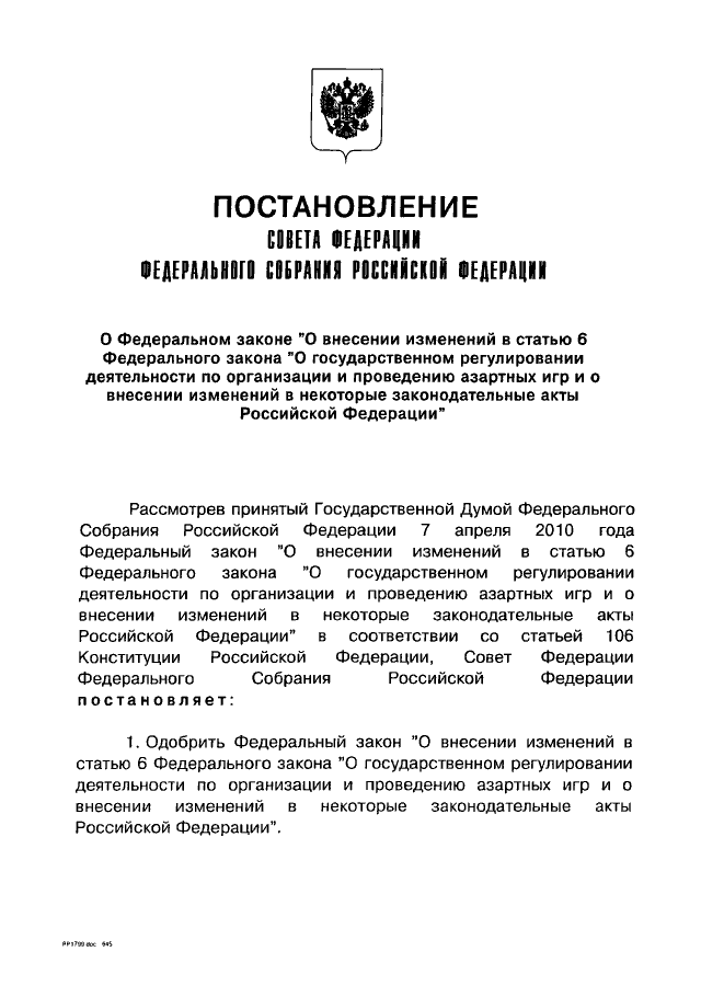 ПО ОРГАНИЗАЦИИ И ПРОВЕДЕНИЮ АЗАРТНЫХ ИГР И О ВНЕСЕНИИ ИЗМЕНЕНИЙ В