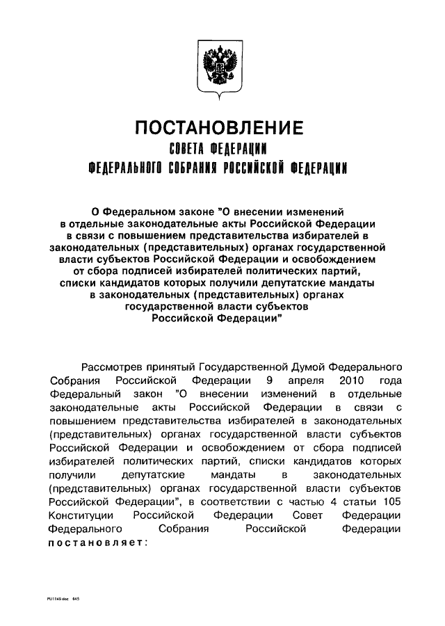 ПОСТАНОВЛЕНИЕ СФ ФС РФ от 14.04.2010 N 118-СФ