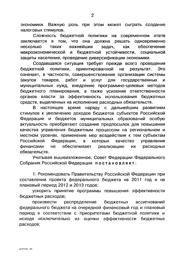 "О ПРЕДЛОЖЕНИЯХ СОВЕТА ФЕДЕРАЦИИ ФЕДЕРАЛЬНОГО СОБРАНИЯ РОССИЙСКОЙ ФЕДЕРАЦИИ ПО ФОРМИРОВАНИЮ КОНЦЕПЦИИ ФЕДЕРАЛЬНОГО БЮДЖЕТА НА 2011 ГОД И НА ПЛАНОВЫЙ ПЕРИОД 2012 И 2013 ГОДОВ"