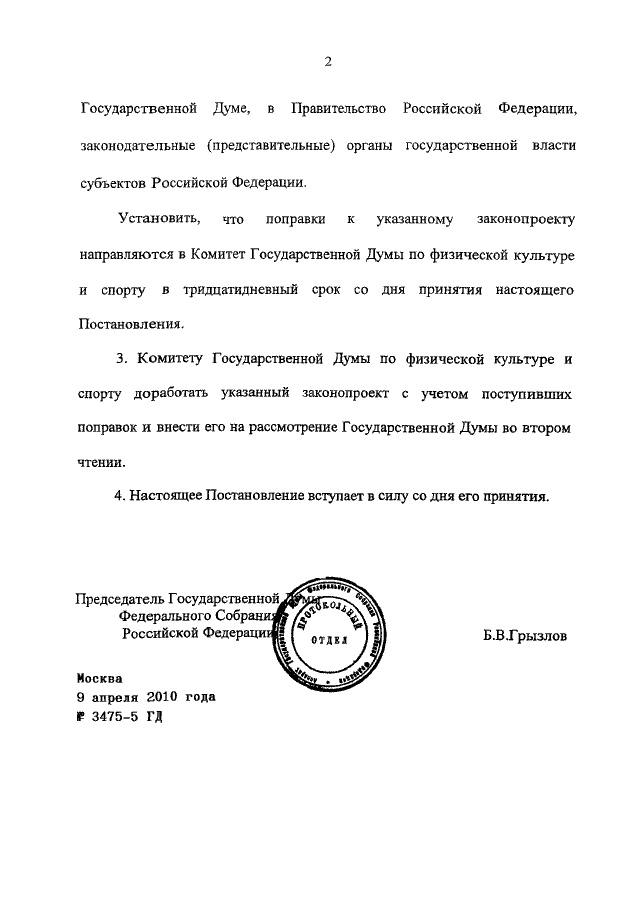 ПОСТАНОВЛЕНИЕ ГД ФС РФ от 09.04.2010 N 3475-5 ГД