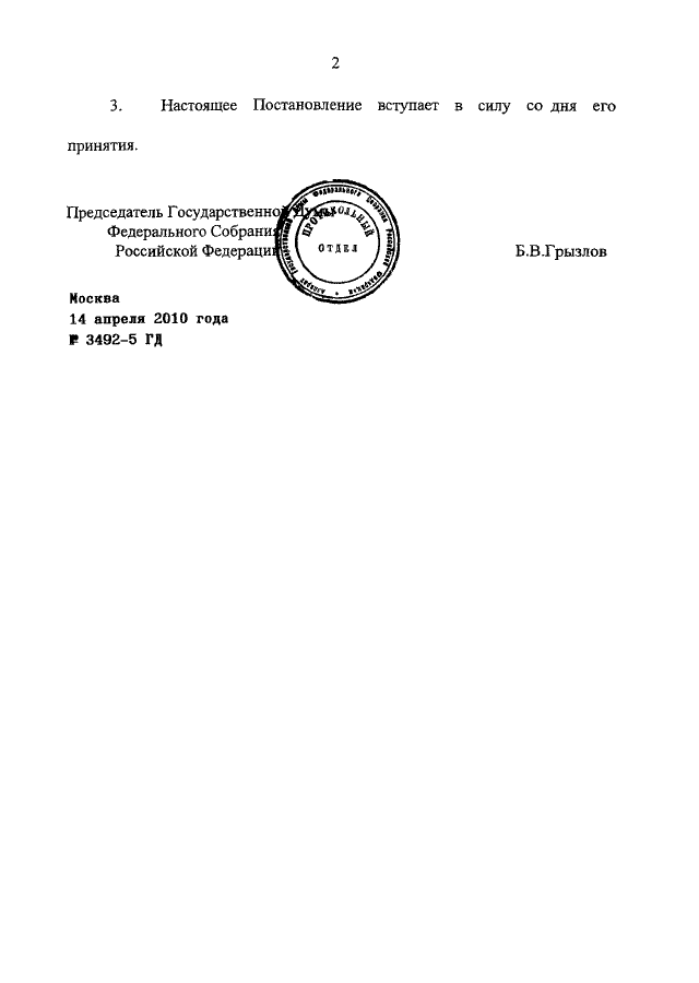 ПОСТАНОВЛЕНИЕ ГД ФС РФ от 14.04.2010 N 3492-5 ГД