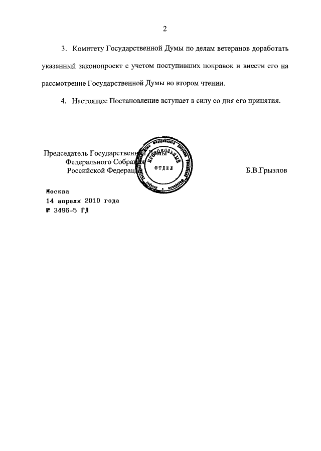 ПОСТАНОВЛЕНИЕ ГД ФС РФ от 14.04.2010 N 3496-5 ГД