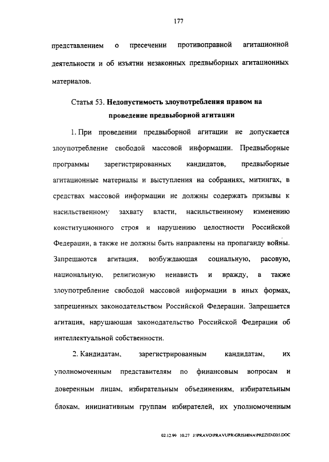 "О ВЫБОРАХ ПРЕЗИДЕНТА РОССИЙСКОЙ ФЕДЕРАЦИИ"
