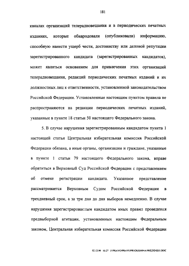 "О ВЫБОРАХ ПРЕЗИДЕНТА РОССИЙСКОЙ ФЕДЕРАЦИИ"