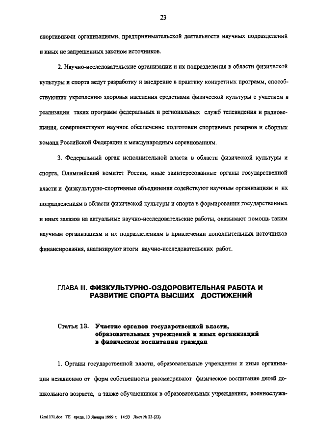 "О ФИЗИЧЕСКОЙ КУЛЬТУРЕ И СПОРТЕ В РОССИЙСКОЙ ФЕДЕРАЦИИ"