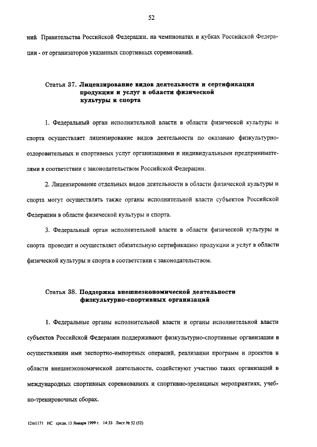 "О ФИЗИЧЕСКОЙ КУЛЬТУРЕ И СПОРТЕ В РОССИЙСКОЙ ФЕДЕРАЦИИ"