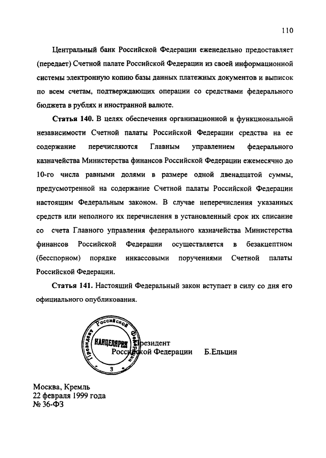 ФЕДЕРАЛЬНЫЙ ЗАКОН от 22.02.1999 N 36-ФЗ
