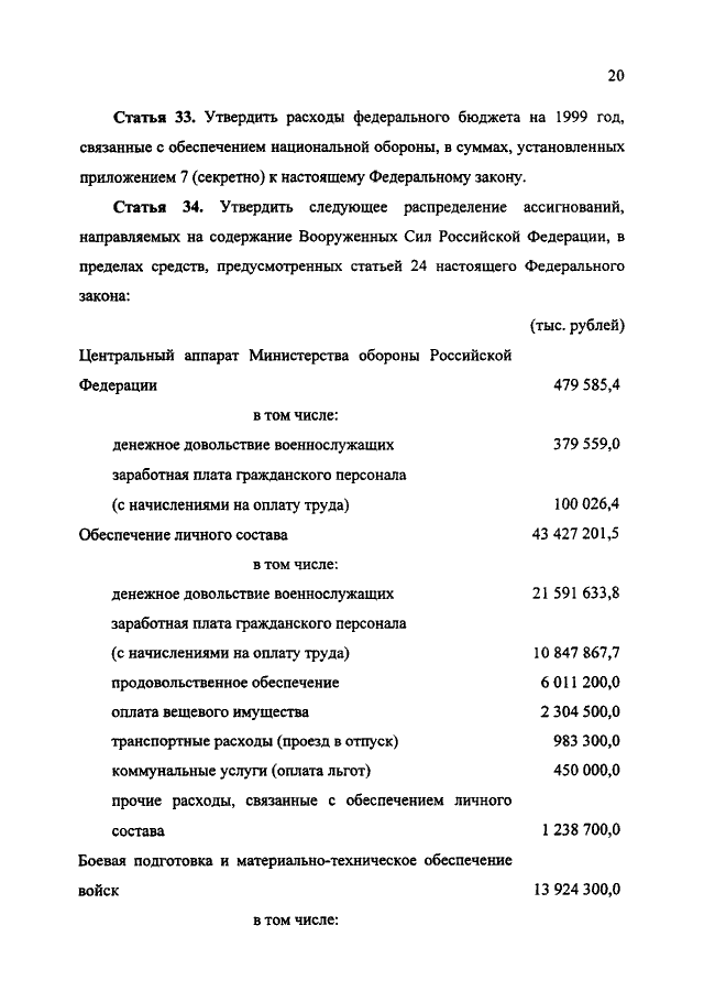 "О ФЕДЕРАЛЬНОМ БЮДЖЕТЕ НА 1999 ГОД"