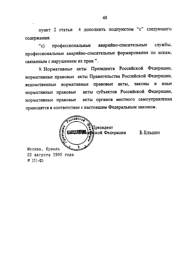 ФЕДЕРАЛЬНЫЙ ЗАКОН от 22.08.1995 N 151-ФЗ