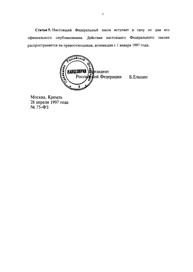 ФЕДЕРАЛЬНЫЙ ЗАКОН от 28.04.1997 N 75-ФЗ