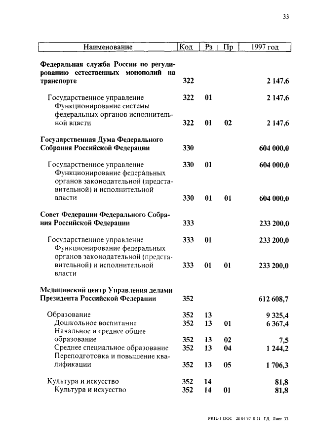 "О ФЕДЕРАЛЬНОМ БЮДЖЕТЕ НА 1997 ГОД"