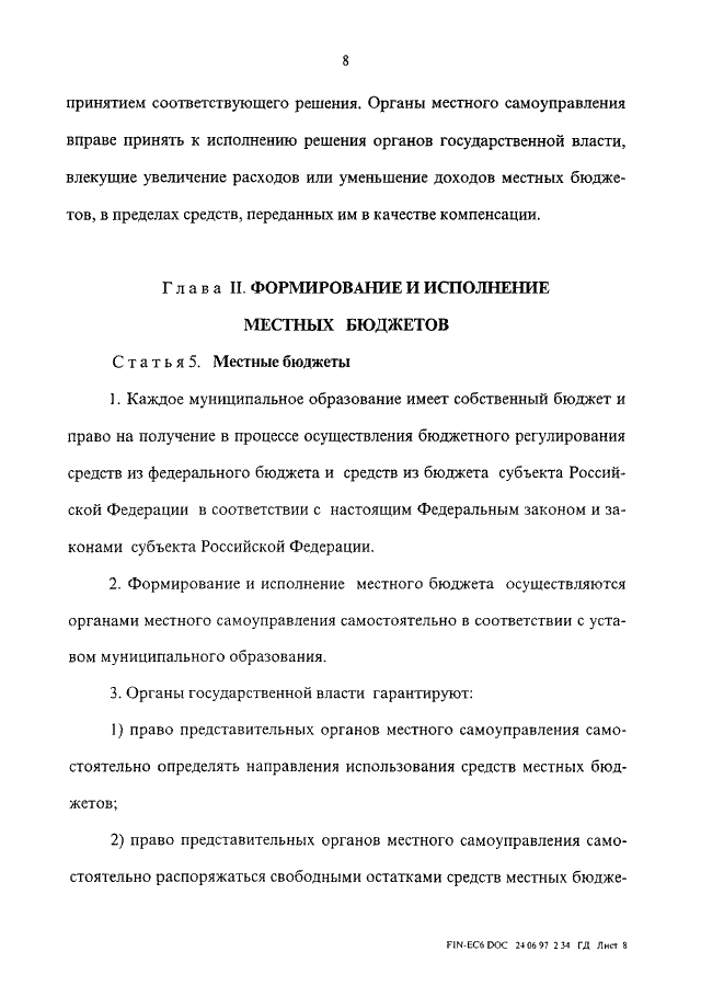 "О ФИНАНСОВЫХ ОСНОВАХ МЕСТНОГО САМОУПРАВЛЕНИЯ В РОССИЙСКОЙ ФЕДЕРАЦИИ"