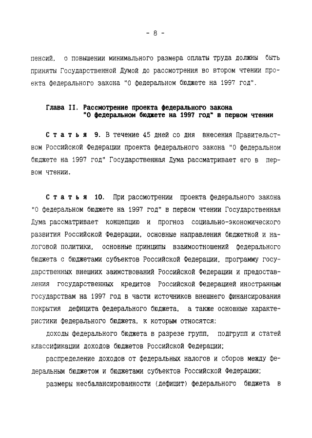 "О ПОРЯДКЕ ВНЕСЕНИЯ, РАССМОТРЕНИЯ И ПРИНЯТИЯ ФЕДЕРАЛЬНОГО ЗАКОНА "О ФЕДЕРАЛЬНОМ БЮДЖЕТЕ НА 1997 ГОД"