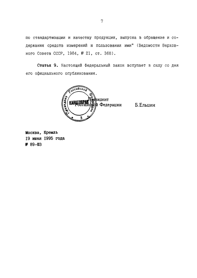 ФЕДЕРАЛЬНЫЙ ЗАКОН от 19.06.1995 N 89-ФЗ