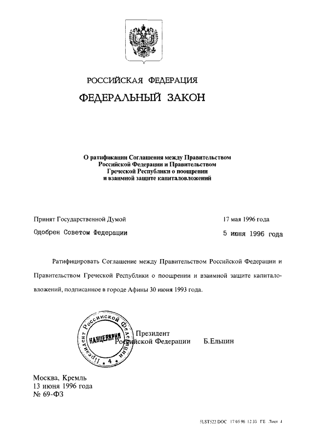 ФЕДЕРАЛЬНЫЙ ЗАКОН от 13.06.1996 N 69-ФЗ