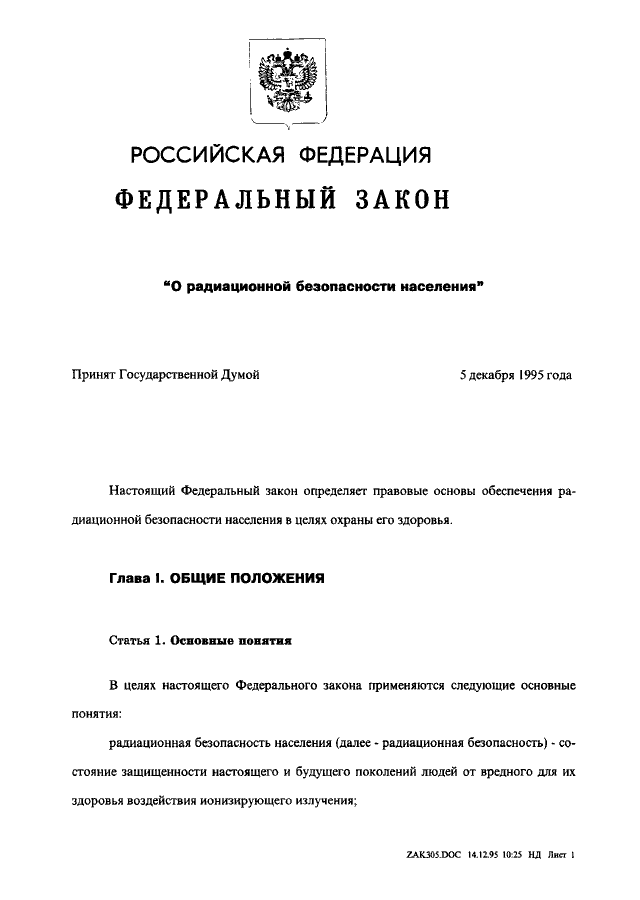 "О РАДИАЦИОННОЙ БЕЗОПАСНОСТИ НАСЕЛЕНИЯ"