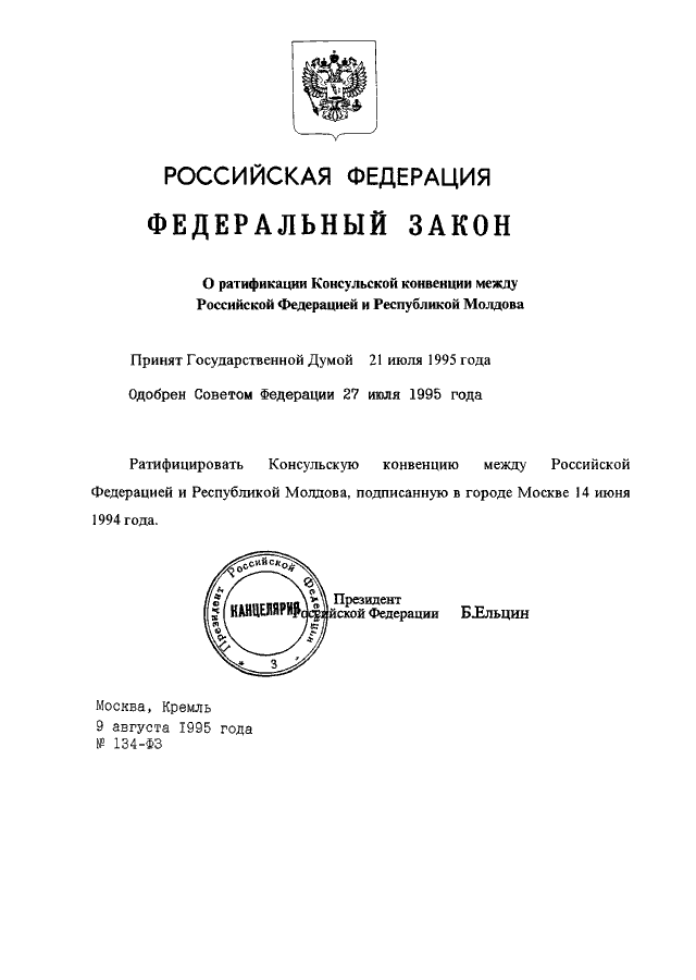 "О РАТИФИКАЦИИ КОНСУЛЬСКОЙ КОНВЕНЦИИ МЕЖДУ РОССИЙСКОЙ ФЕДЕРАЦИЕЙ И РЕСПУБЛИКОЙ МОЛДОВА"
