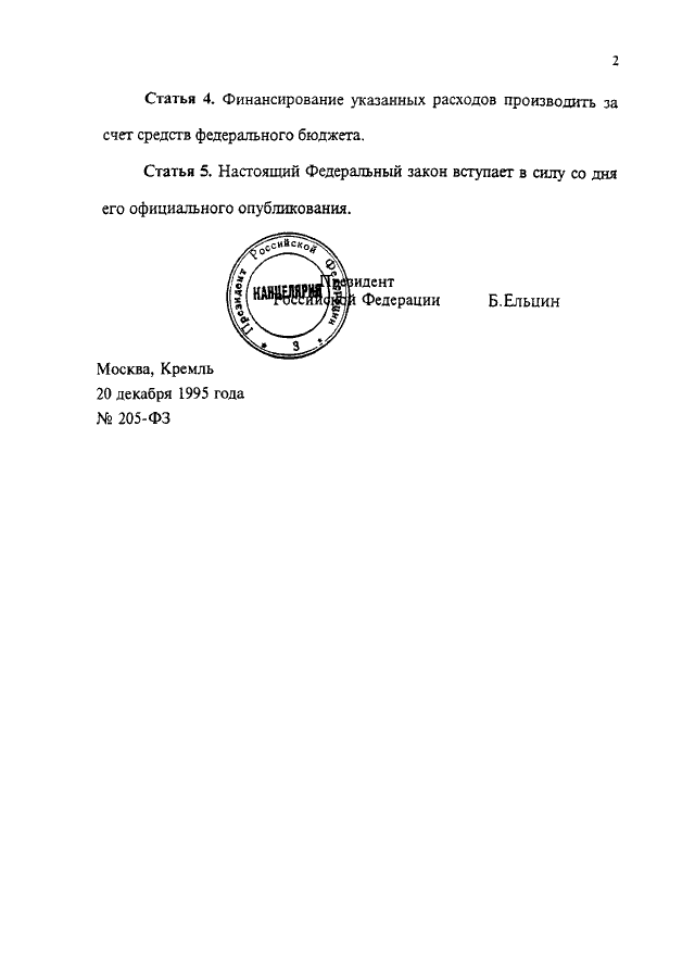 ФЕДЕРАЛЬНЫЙ ЗАКОН от 20.12.1995 N 205-ФЗ